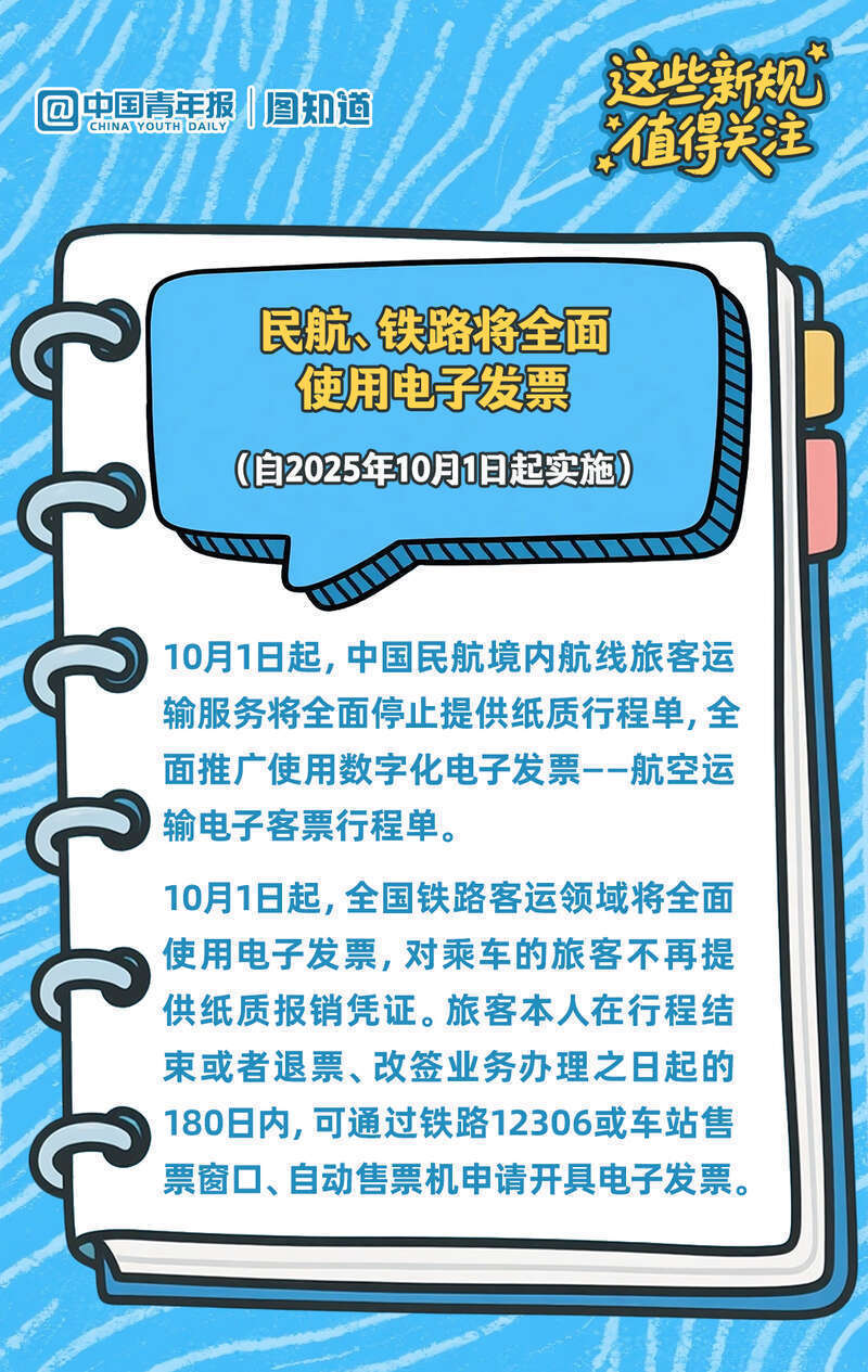 回应“内卷式”竞争等新问题,民航、铁路将全面使用电子发票,对永久基本农田的划定等作出具体规定……2025年10月,这些新规值得关注,多图速览。